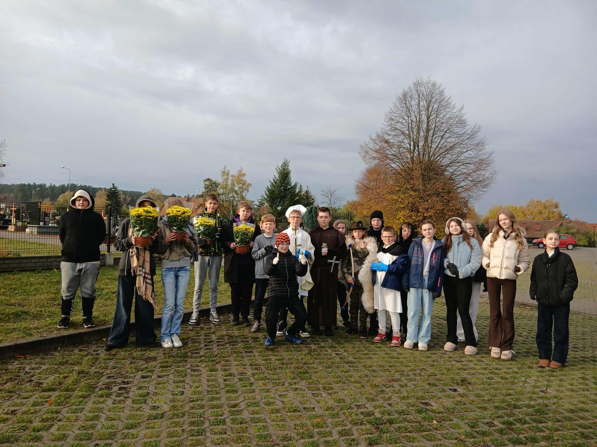 Przed Uroczystością Wszystich Świętych uczniowie kl. 6a odwiedzili charzykowski cmentarz, posprzątali stare groby i zapalili znicze.